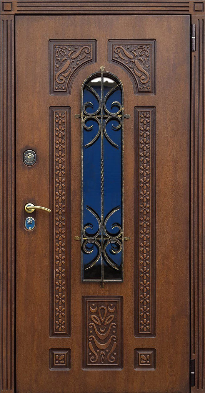 Входные двери в Верее с применением декора витражом изготавливаются из стального профиля, придающего прочность конструкции, а сама витражная вставка обладает высокой взломостойкостью, поскольку для витражных композиций используется специальное стекло, обработанное особым образом. Усилить надежность витражного элемента можно с помощью использования декоративных кованных решеток.