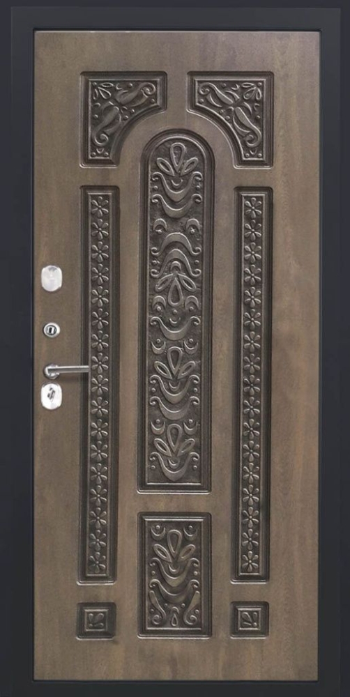 Дизайнерская входная Входная дверь ДвериПРО Д-68 Д-19 (16мм, Грецкий орех + черная патина винорит) DPRO196663 класса Люкс с несколькими листами стали, звукоизоляцией и теплоизоляцией. Утепленный короб и полотно защитят от сквозняков и шумов. Модель не только надежная, комфортная, защищенная и высочайшего качества, но и очень красивая! Будет отлично сочетаться с интерьером дома, квартиры или офиса. Сейчас действует выгодное предложение по цене: 86 800 руб.