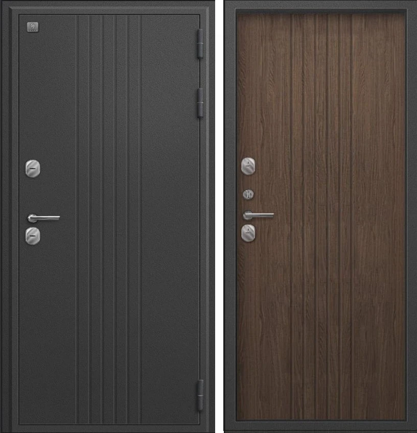 Надежная входная Дверь Термо-90 графит букле - миндаль рифлёный премиум класса по цене 34 000 руб. Большая толщина стали защитит от проникновения в ваш дом, квартиру или коттедж. Используется очень качественная фурнитура: замки, цилиндры, ручки, защелки. Покрытие и отделка двери изготовлено под внимательным контролем производителя. Дверь имеет долгий срок службы и гарантию.